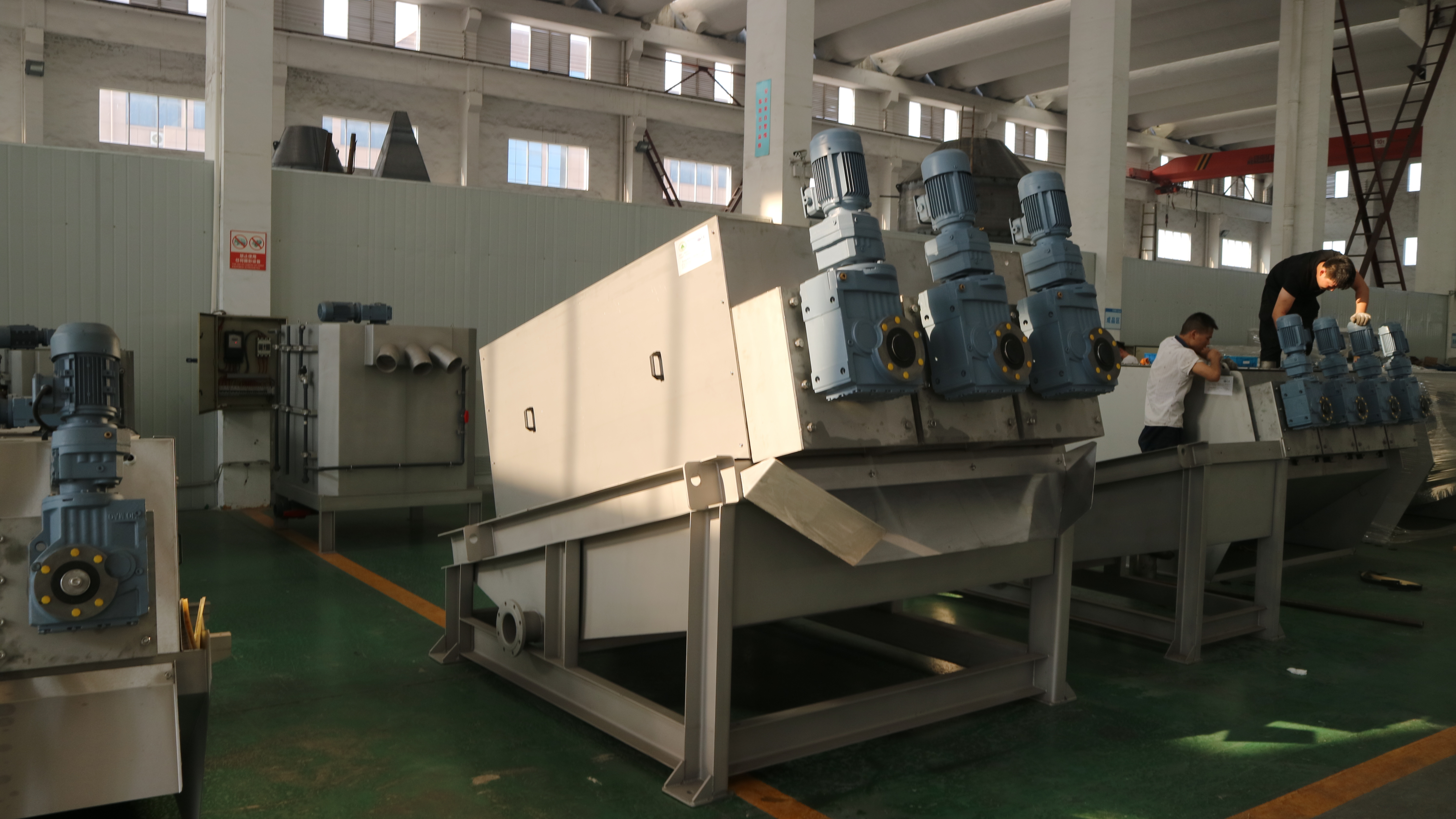 as the large quantities of water consumption, operation requirement is high etc. But,the screw type sludge dehydrator is a new