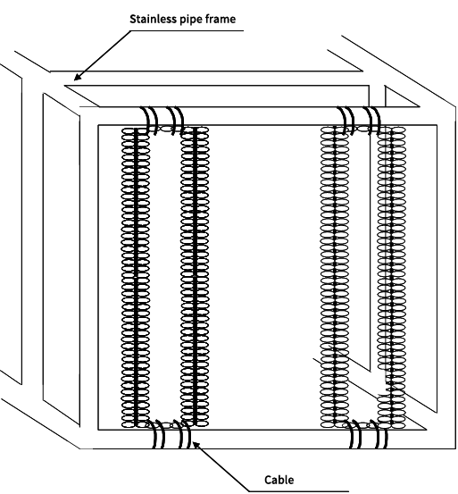 Fix the upper and lower ends of the bio cord filter media on the frame. The standard is 10cm between the vertical and horizontal. Therefore, the installation amount of the bio cord filter media for 1 cubic meter frame is 100m.